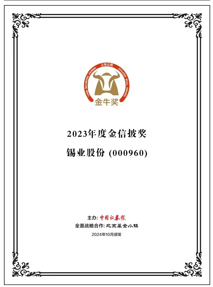每一項榮譽(yù)都是錫業(yè)人智慧與汗水的凝聚