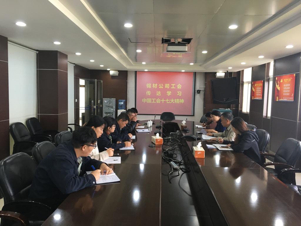 11月20日,錫業(yè)股份機(jī)關(guān)工會(huì)召開學(xué)習(xí)宣傳貫徹中國工會(huì)十七大會(huì)議精神專題會(huì)議。