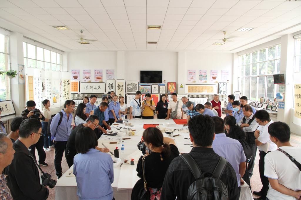 交流會(huì)上,藝術(shù)家們還對(duì)云錫職工在此次活動(dòng)前征集的部分文學(xué)、書(shū)畫(huà)、攝影作品進(jìn)行點(diǎn)評(píng)。文藝愛(ài)好者們與大師們近距離地學(xué)習(xí)與交流,大師們主動(dòng)傳藝,為培養(yǎng)云錫的藝術(shù)人才,活躍文化生活提供了強(qiáng)大的力量?;顒?dòng)在參觀書(shū)畫(huà)作品展覽,書(shū)畫(huà)家現(xiàn)場(chǎng)揮毫潑墨進(jìn)行書(shū)畫(huà)創(chuàng)作中達(dá)到高潮。老藝術(shù)家在活動(dòng)現(xiàn)場(chǎng)即興揮毫潑墨、筆走龍蛇,剛勁有力的書(shū)法,讓人領(lǐng)略到了藝術(shù)的魅力,為云錫寫(xiě)下蘊(yùn)義深遠(yuǎn)的《云錫可敬 礦工可親》《云在錫上 金易成錫》《錫映千秋千秋禧 百年礦業(yè)礦業(yè)興》等作品。