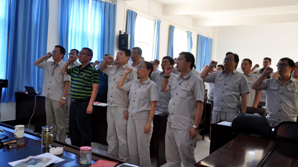 面向黨旗,全體黨員莊嚴地舉起右手重溫入黨誓詞,牢記共產(chǎn)黨員的政治責任和歷史使命,不斷保持共產(chǎn)黨員的先進性和純潔性,以更加飽滿的熱情投身各自工作。