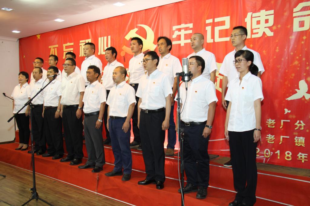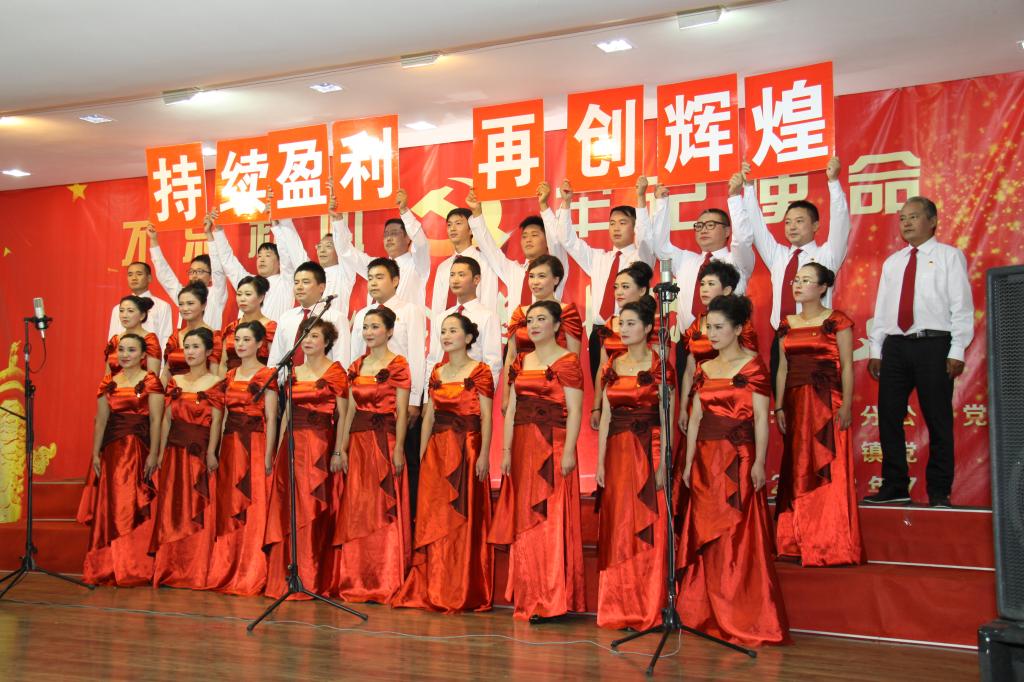 在“不忘初心 牢記使命”紅歌合唱比賽正式開始前,老廠分公司、老廠鎮(zhèn)的領(lǐng)導(dǎo)班子成員聯(lián)合組隊帶頭合唱了《我宣誓》。此次比賽每個參賽隊唱兩首歌,一首是必唱歌曲《我宣誓》,一首為自選歌曲。各參賽隊的選手們以飽滿的熱情、激昂慷慨的士氣、嘹亮的歌聲,競相唱響入黨誓詞,歌唱偉大的中國共產(chǎn)黨。