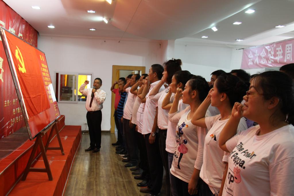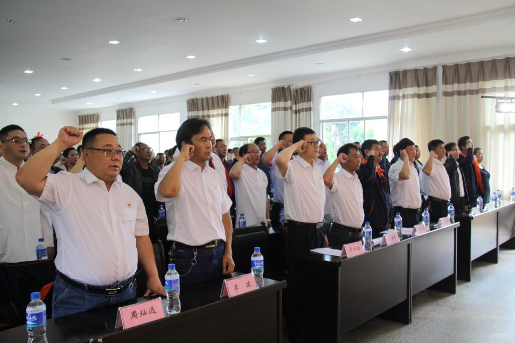紀(jì)念大會上,38名新黨員面對黨旗舉起右手,在組織人力資源部主任李宏偉的領(lǐng)誓下,進行了莊嚴(yán)的入黨宣誓儀式;隨后,參加紀(jì)念大會的全體黨員右手握拳舉起,面向黨旗共同重溫入黨誓詞。通過重溫入黨誓詞,使廣大黨員心中產(chǎn)生了強烈的共鳴,思想得到了洗禮和升華,激發(fā)了黨員們的黨性熱情和愛國熱情,進一步增強了黨組織的凝聚力和戰(zhàn)斗力。