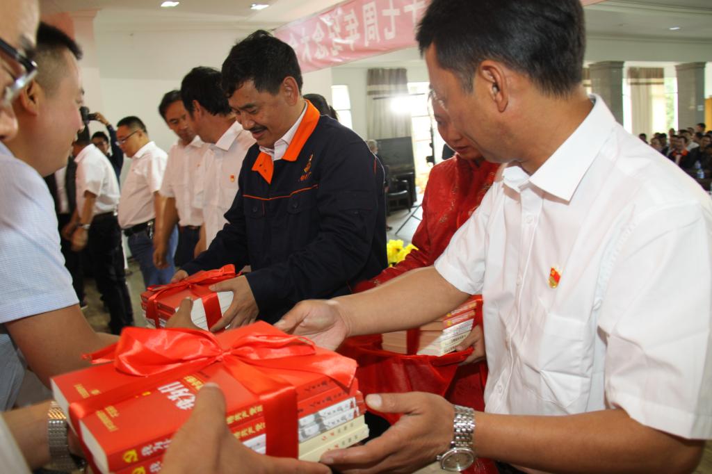 紀(jì)念大會上,分公司領(lǐng)導(dǎo)向11個黨總支(直屬黨支部)贈送了黨建書籍。最后,在《沒有共產(chǎn)黨就沒有新中國》的歌聲中結(jié)束了紀(jì)念大會。