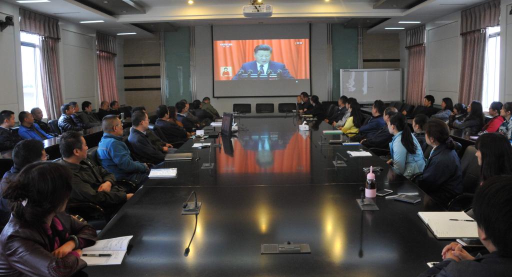 云錫控股公司和錫業(yè)股份機關(guān)黨員干部職工260余人在云錫賓館報告廳進行了集中收看。兩級公司領(lǐng)導(dǎo)班子成員與干部員工一起收看了黨的十九大開幕會盛況。
